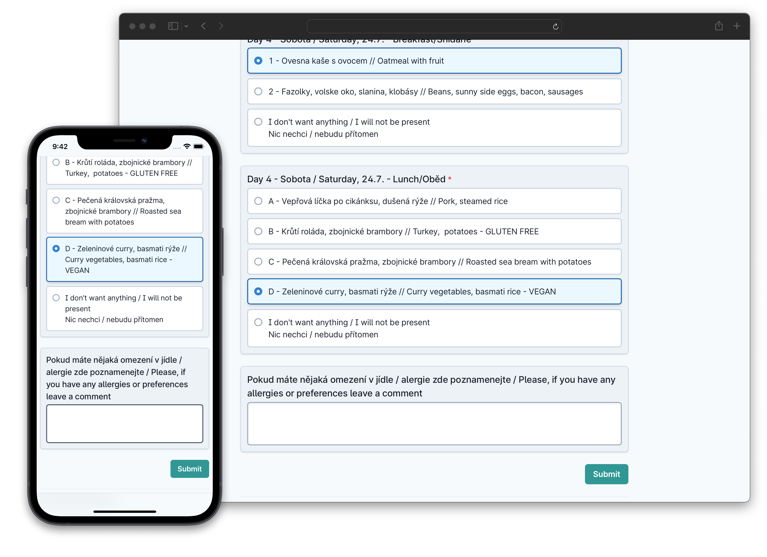 - Distribute food according to previous selection