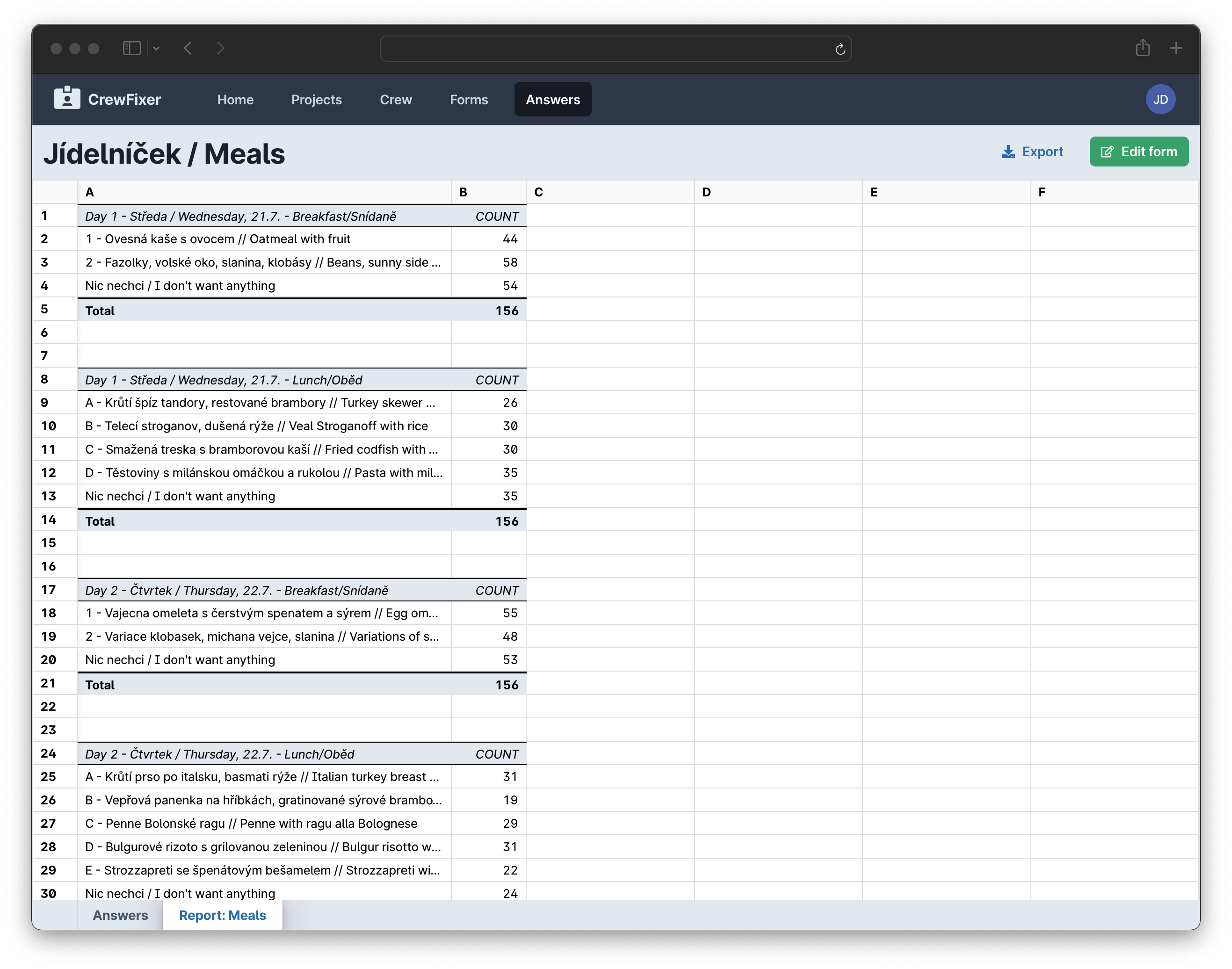 Use iOS or Android tablet to scan QR codes on badges. Based on QR code CrewFixer Meal App will tell you what meal should be served to your crew.
