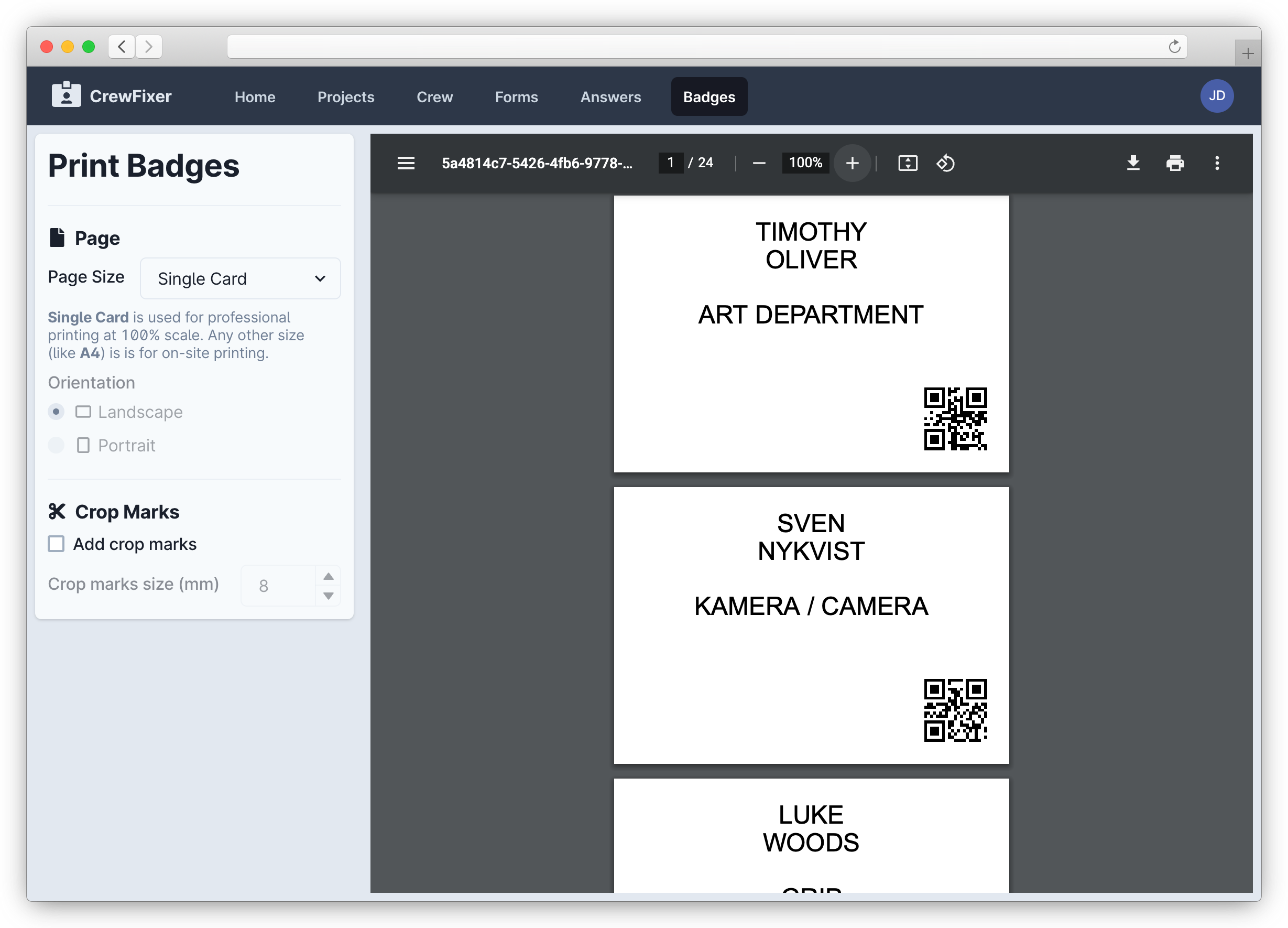 Create and print badges
