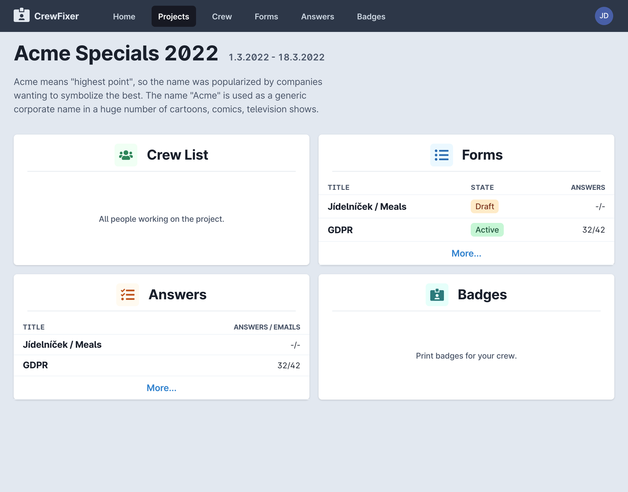 See your forms, answers and badges associated with the specific project.