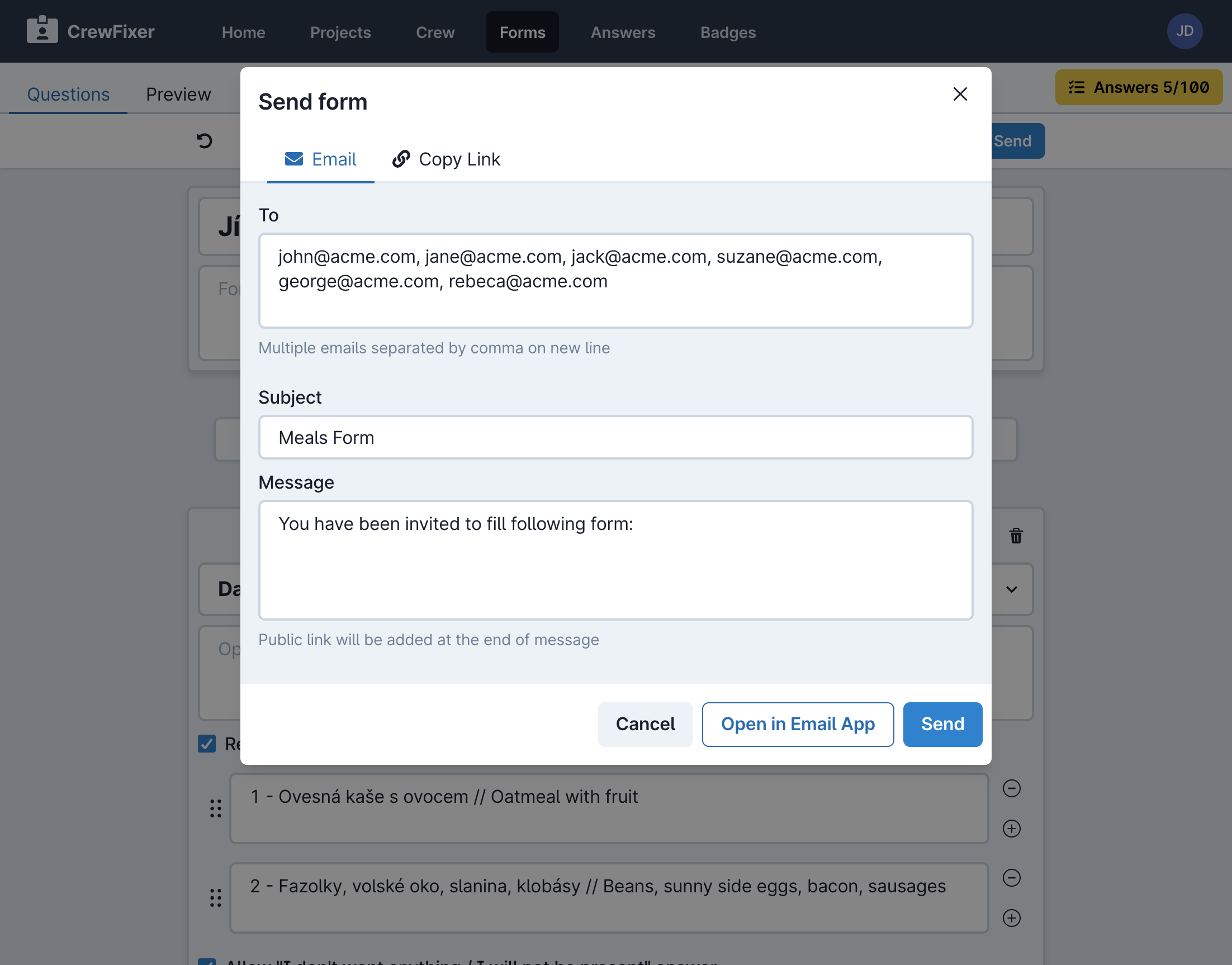 Send forms to all your crew