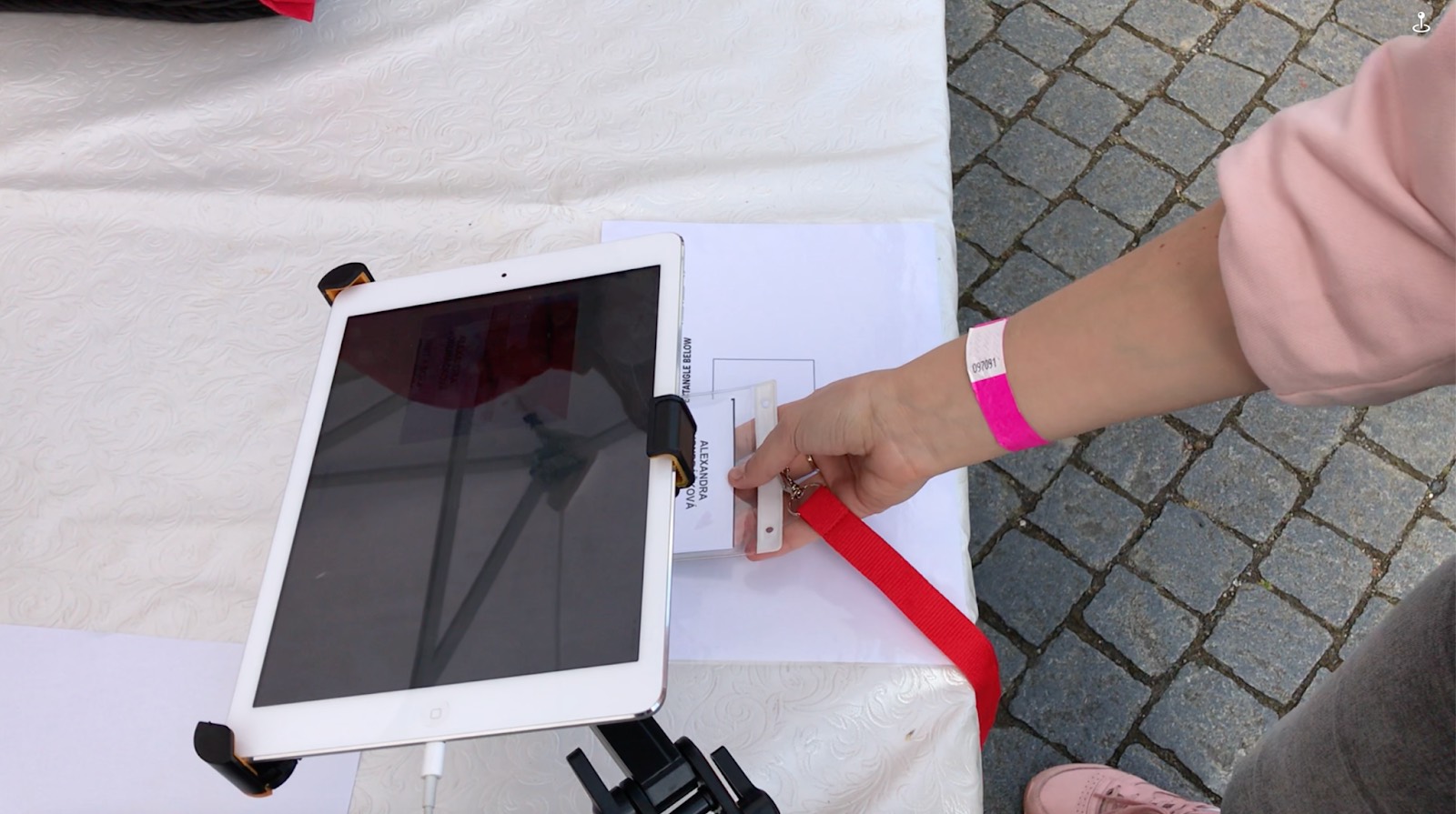 - Scan badge QR code with tablet